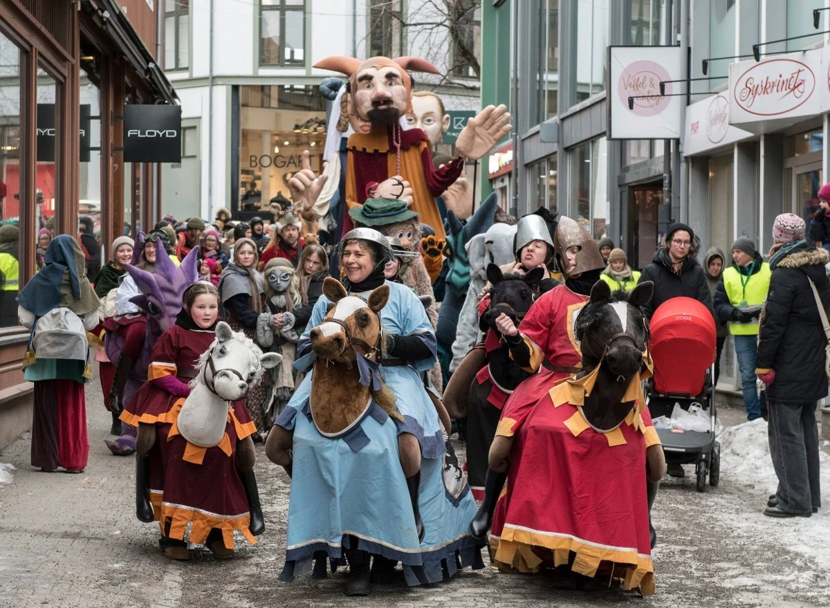 Figurfestspillene holder jo til i en av Norges desidert mest kjente middelalderbyer, og det preger naturligvis festivalens parade. Her er det mange gode lokale krefter i sving. Ridderselskapet Mentulatum med sine sprelske – og skikkelig søte – hester leder an. Artig. Drager i alle størrelser er med. Den minste var en liten hund i dragekostyme. Middelalderkledde musikere med fløyter og trommer skapte fest og stemning. Det ble en skikkelig staselig middelalderbyfigurparade.